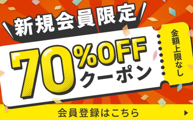 - 初回限定70%OFF(上限500円まで)